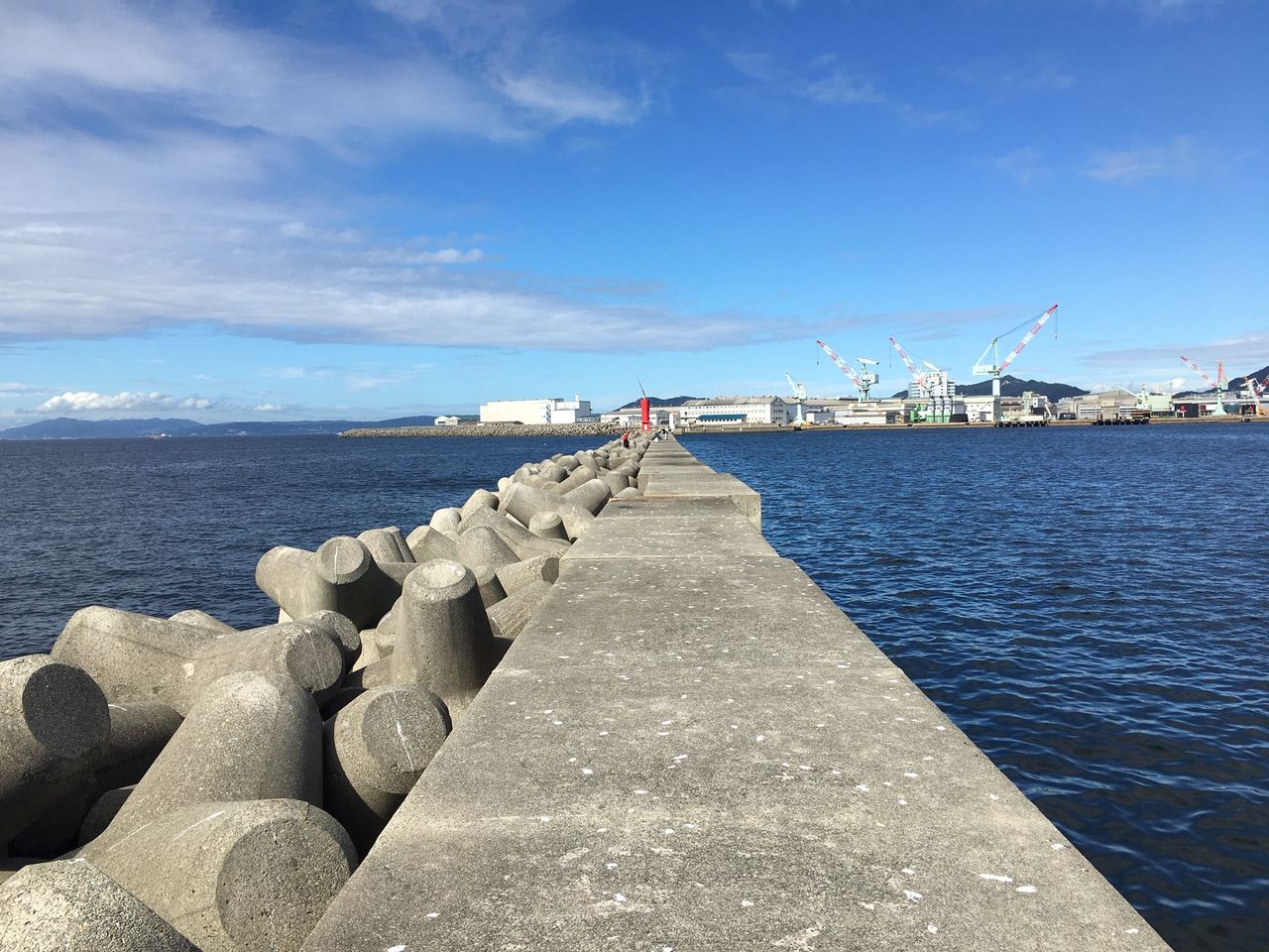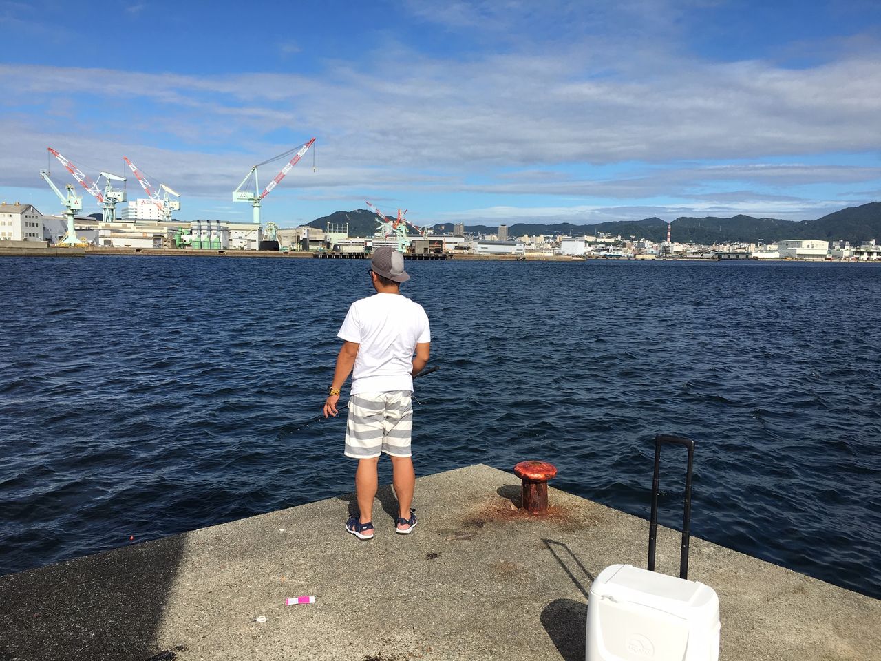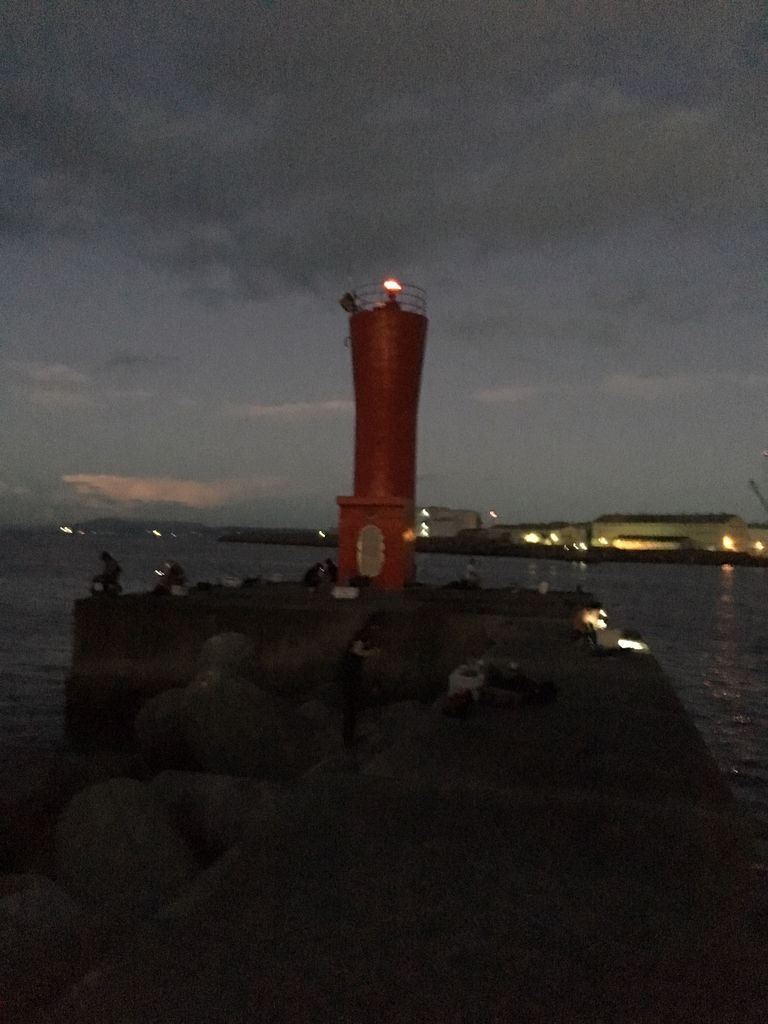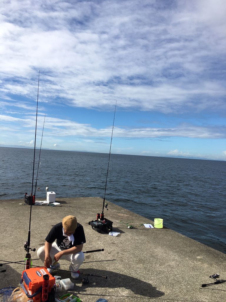 いつもなら前日からの通しで夜中はガシラ+はしりのタチウオ、夜明け前から青物を狙うパターンなのだが、今回は台風接近の影響で通しが無かったのと、なぜかこのクソ暑いのに日が昇ってからしか釣れない、という情報があり1番船での渡堤にしたのだ。
