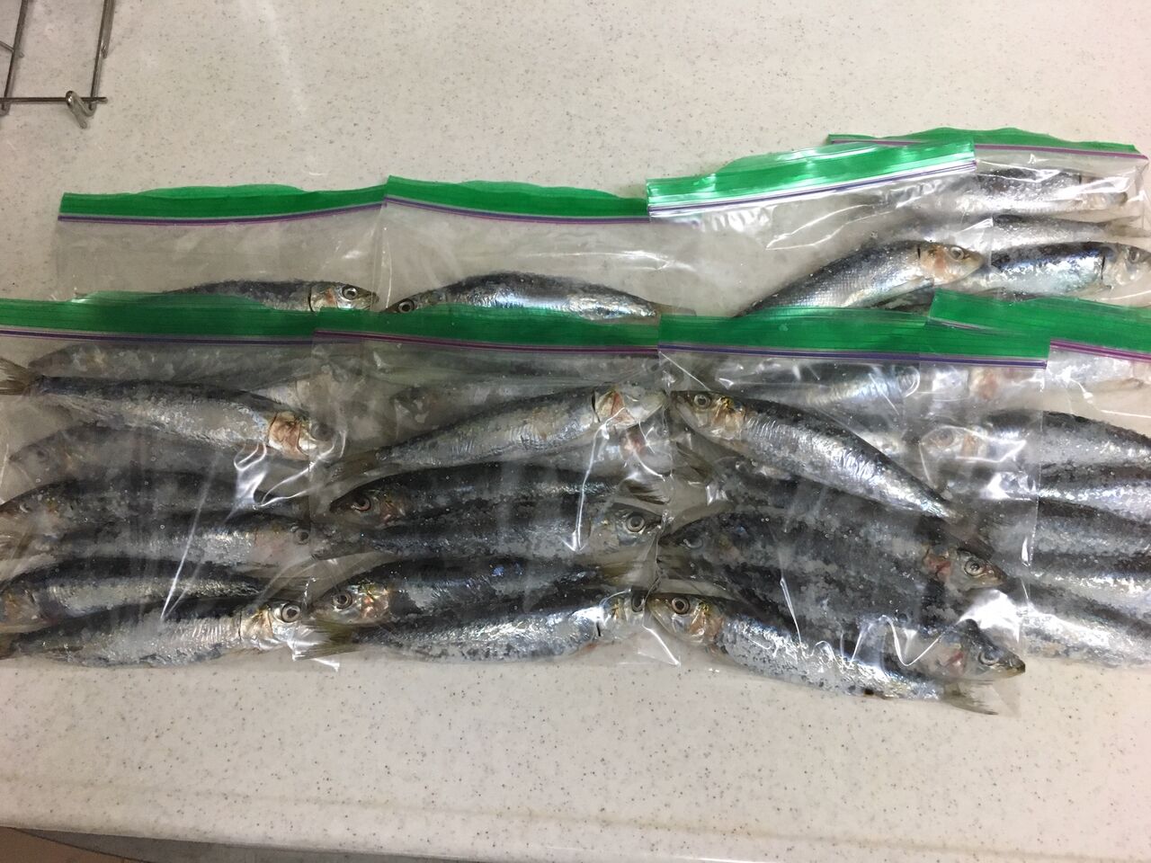 イワシのしっぽだけ齧られていたり、ハラワタだけ出されていたりと消耗が激しい。