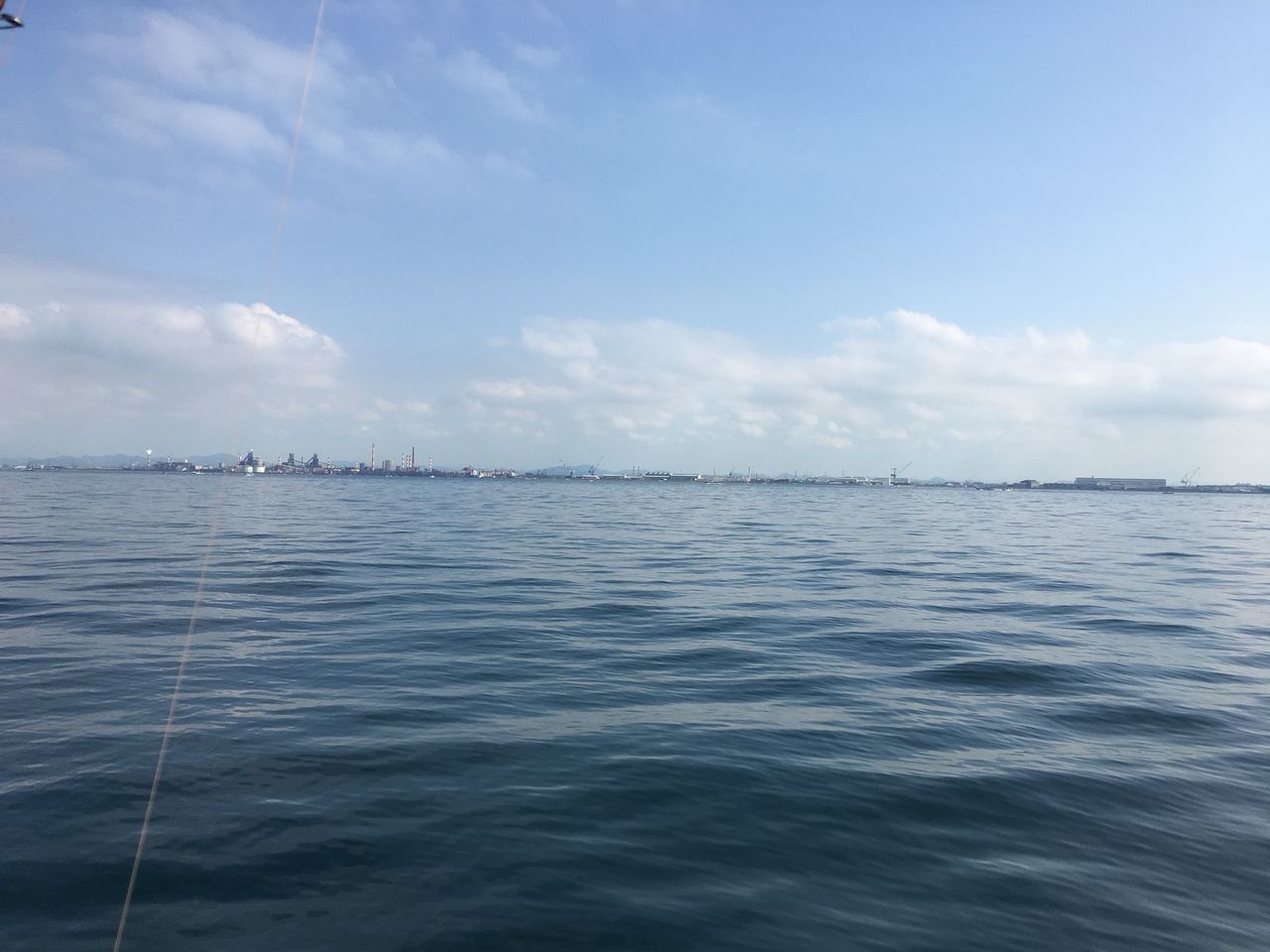プレジャーボートに乗ったのは初めてだったので「ホントにここで釣れるの?」と思いながらも、せっかく乗せていただいている身分なので意見も言えずに第1投。